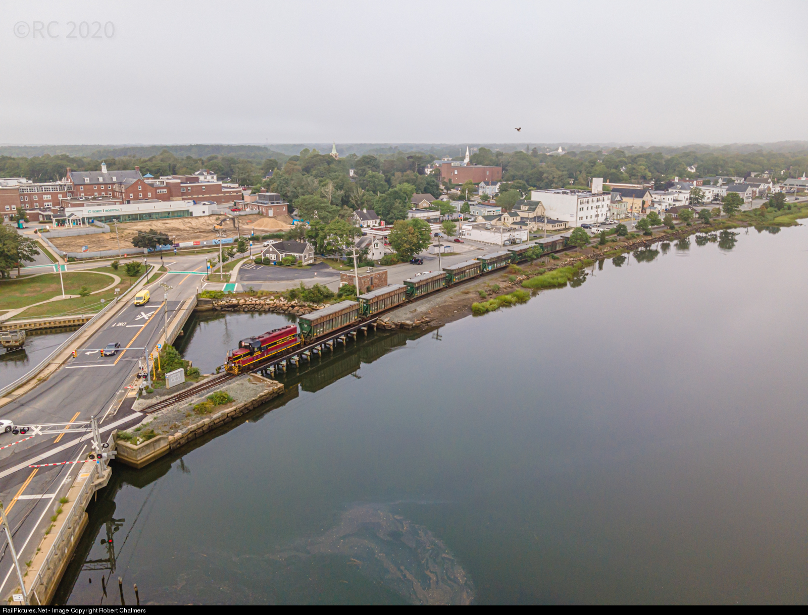 Mass Coastal’s Energy Train (MC-1) is seen going by Wareham Village with 8 empties for Yarmouth.