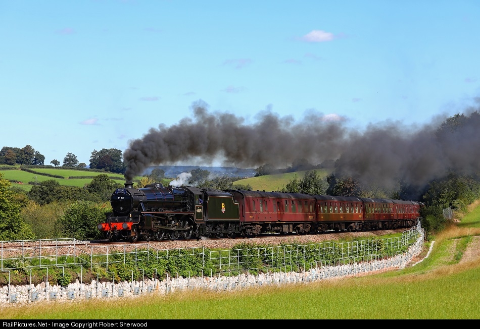| Black 5 44871 climbs Dainton Bank at Kerswell Bridge hauling 1Z82 08:47 Bristol Temple Meads to Par 'Royal Duchy' charter on Sunday 30th August 2020 |