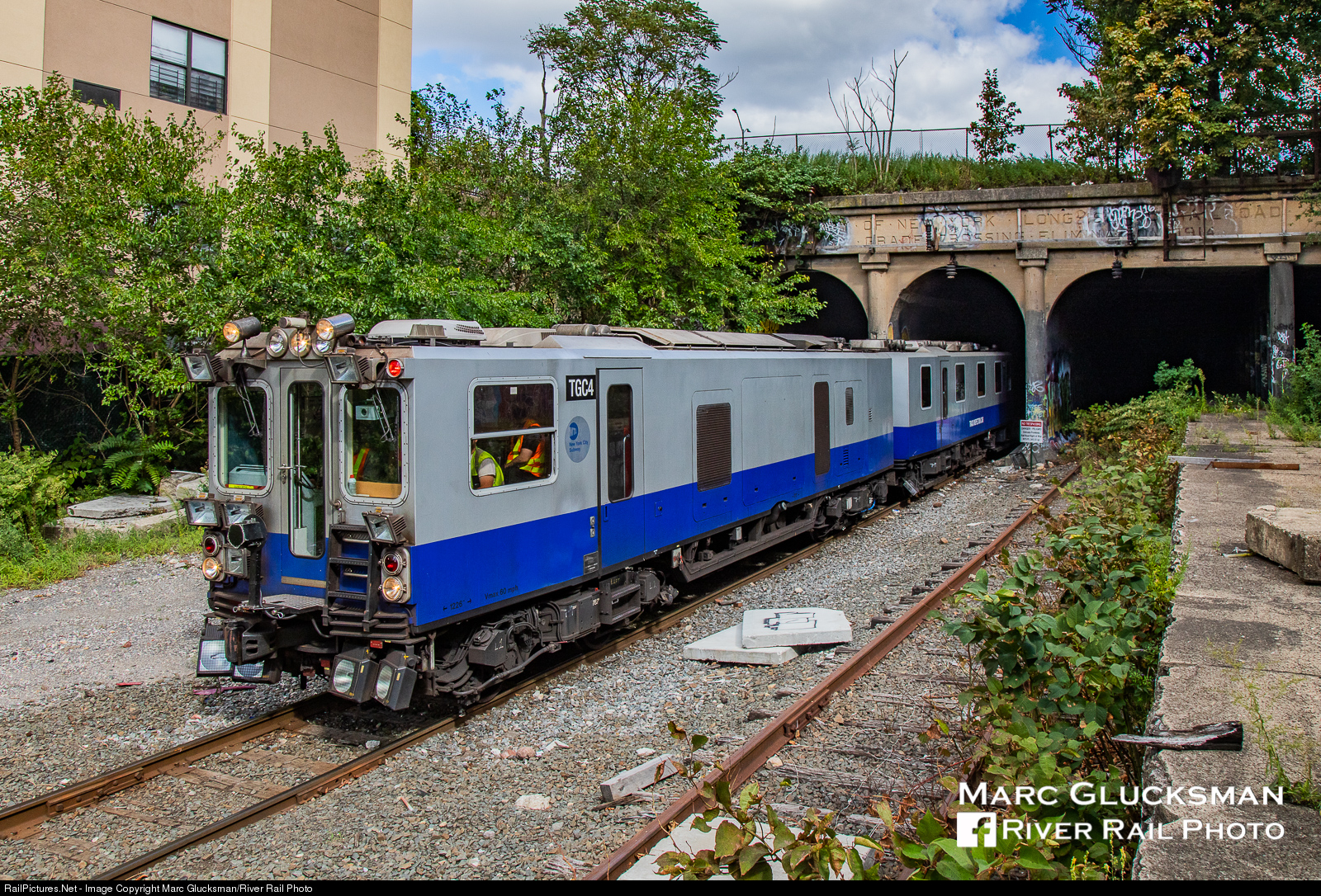 Sunday Was All About Shapes. MTA New York City Transit Subway TGC 3 and TGC 4 are an identical set of track geometry cars built by Plaser. This unique pair normally patrols the trackage of the NYCT checking for defects, but on Sunday, August 30, 2020, TGC 4 is seen returning from a unique trip off the property where it inspected the geometry of the MTA LIRR East Side Access project. In the morning light, it is seen exiting the former New Haven Railroad East New York Tunnels on the Bay Ridge Line in Brooklyn, New York on the way to be interchanged back to NYCT.