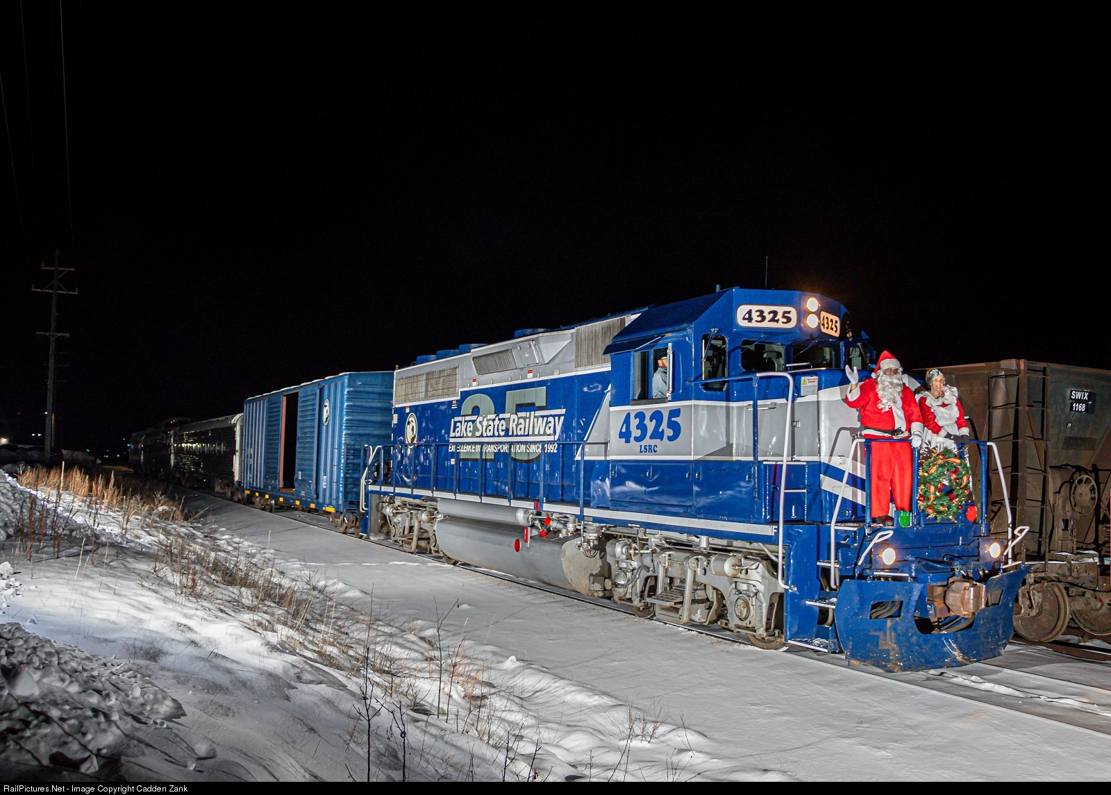 | Arriving to the final stop of the all day journey, LSRC 4325 leads the 2019 Toys For Tots train into Grayling. Here they will sit for the next hour, and allow the little ones to visit Mr & Mrs Claus in the Jim George Car before calling it a night.