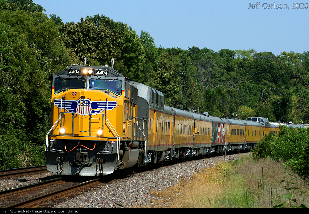 See beautiful diesel locomotives in UP's traditional armour yellow livery and special commemorative paint schemes pulling long trains of yellows cars reminiscent of the days when UP domeliners seemed to go Everywhere West.