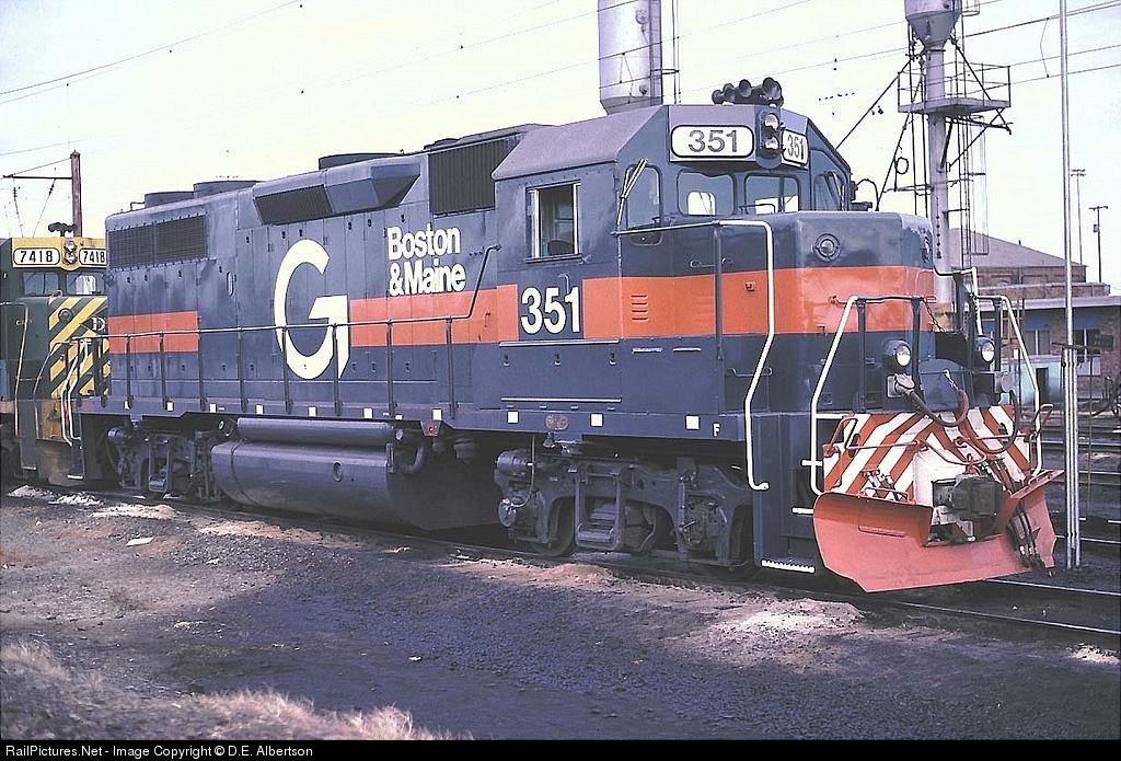 | B&M 351, ex D&H 7620, sits in the e/f after bringing RW-6 into Potomac yard. Might have been her maiden voyage. 28OCT84 |