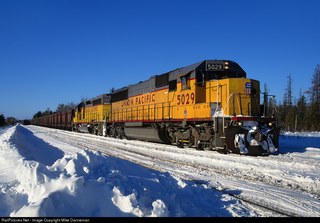 Two Union Pacific taconite ore trains meet at the siding at Little Lake, Michigan, on January 19, 1997. UP operated this former C&NW ore route only a short time before Wisconsin Central, and eventually Canadian National took over the line. Ore no long moves on the line with the closure on Empire Mine, and CN closed the Escanaba ore dock in 2017.