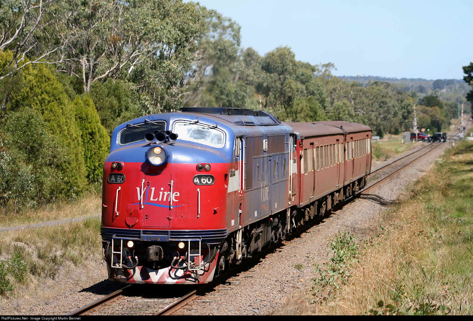 A60 roars up the 1 in 50 Langwarrin bank between Baxter and Leawarra, with a light load of two MTH passenger cars. The Stony Point line is operated as a diesel shuttle between the electric terminus at Frankston, and the tiny town of Stony Point on Westernport Bay. Unusually, it is operated by the suburban operator (Connex at the time of this photo), using hired rollingstock from country operator V/line. Until 2008 it was something of a railfan paradise, with the short consist being hauled by one of the four streamlined A class EMD's - which are a 1980's rebuild of 1950's B class locomotives. A60 was the first mainline diesel electric loco to run in Victoria, and is now preserved with the Seymour Railway Heritage Centre. You can watch some video footage of this operation here: https://youtu.be/HKzHWKSCrxg