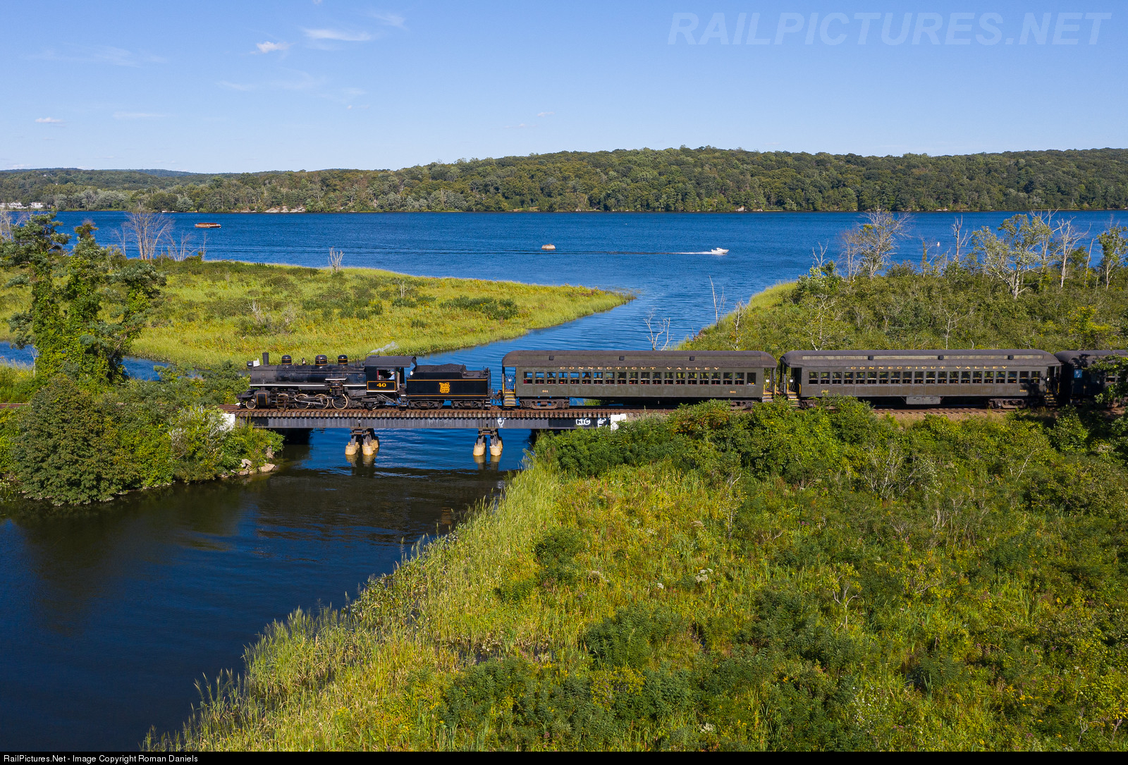 Valley Railroad no. 40 leads the 3:30 departure from Essex north crossing Deep River Creek Bridge. 40 was built by the American Locomotive Company in 1920 celebrating it’s one hundredth birthday this year. The former DL&W coaches are all over one hundred years old as they were built in the mid teens.