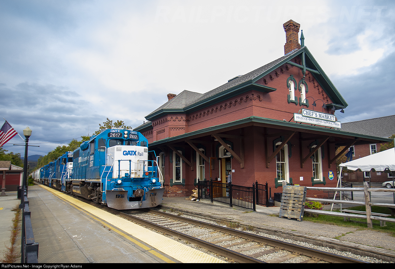 | The final southbound Vermont Railway detour train passes by the Randolph Amtrak station, as clouds and smoke begin to move into the area. The slight haze of smoke is from the west coast, having traveled all the way around the world. |