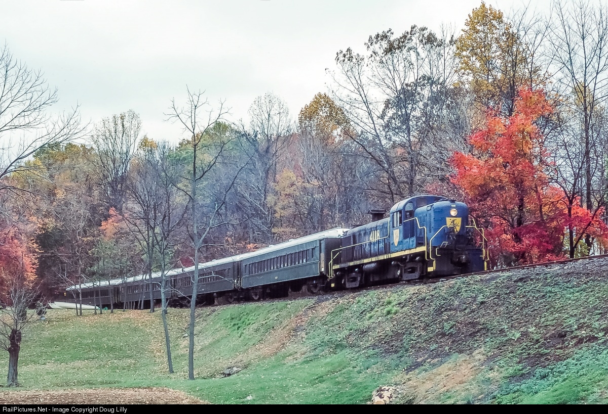 Some brilliant autumn colors have persisted into November for the Anthracite Railway’s annual excursions, one of which is seen rolling westbound into Powder Valley, Pennsylvania.