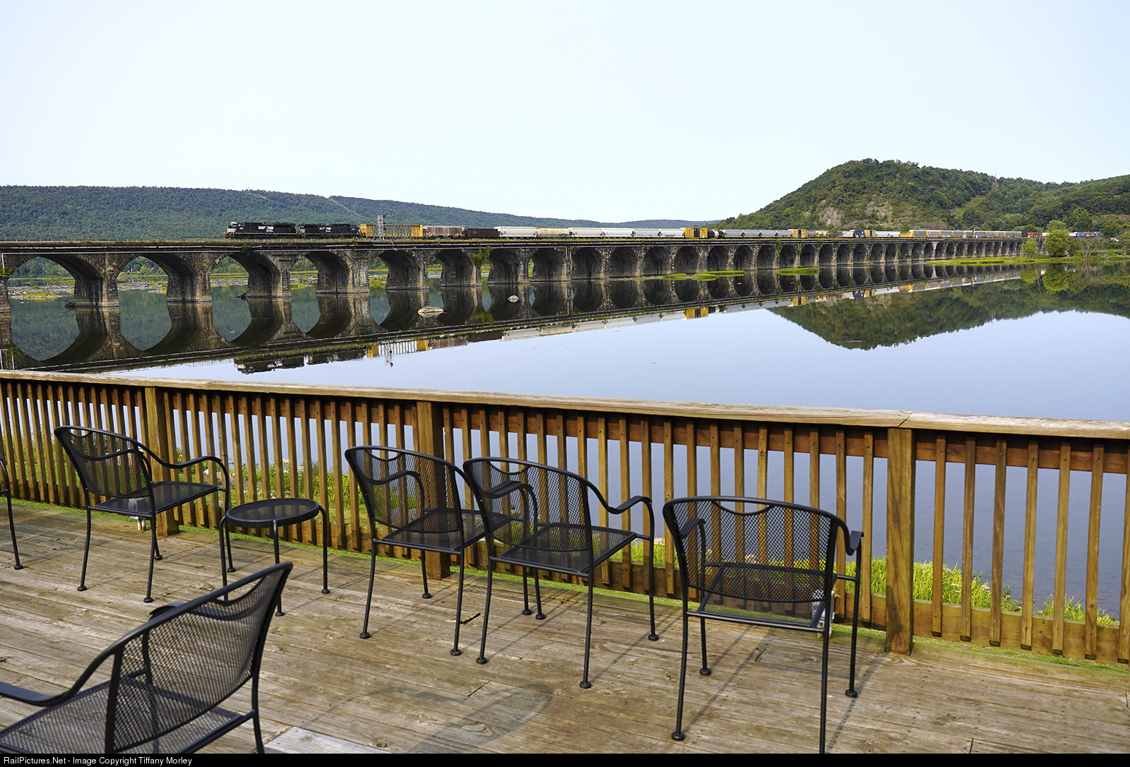 A relaxing afternoon spent at the Bridgeville Bed & Breakfast with a glass of Wagner Vineyard's Vintner Riesling while a freight crosses the Susquehanna River.