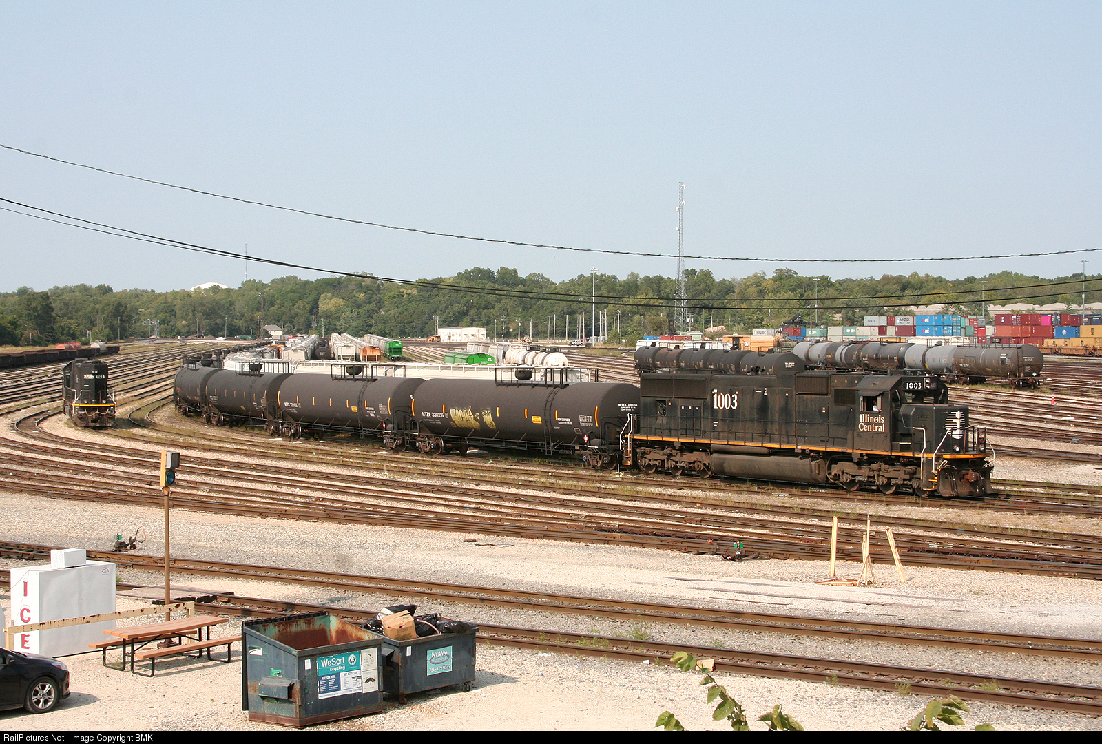 IC 1003 works a cut of tank cars while IC 1036 waits for it's next assignment on the first day of Fall.