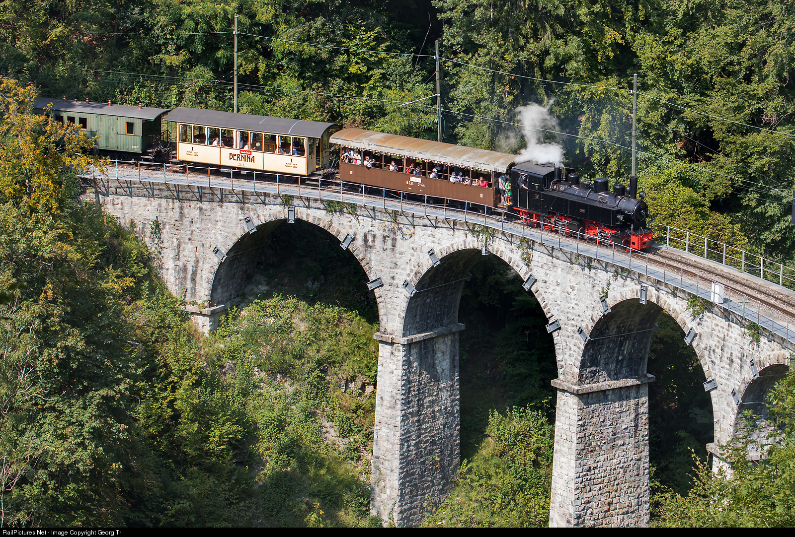 Mallet steamlocomotive G 2x2/2 # 105 of the former Zell-Todtnau in Germany, is pulling train 653 from Blonay to Chaulin-Musée over the Baye de Clarens viaduct.