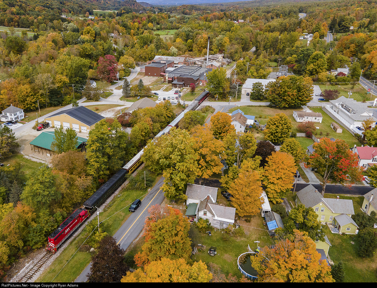 From high above, we see the 2020 AAPRCO special heading down the main from Rutland, VT.