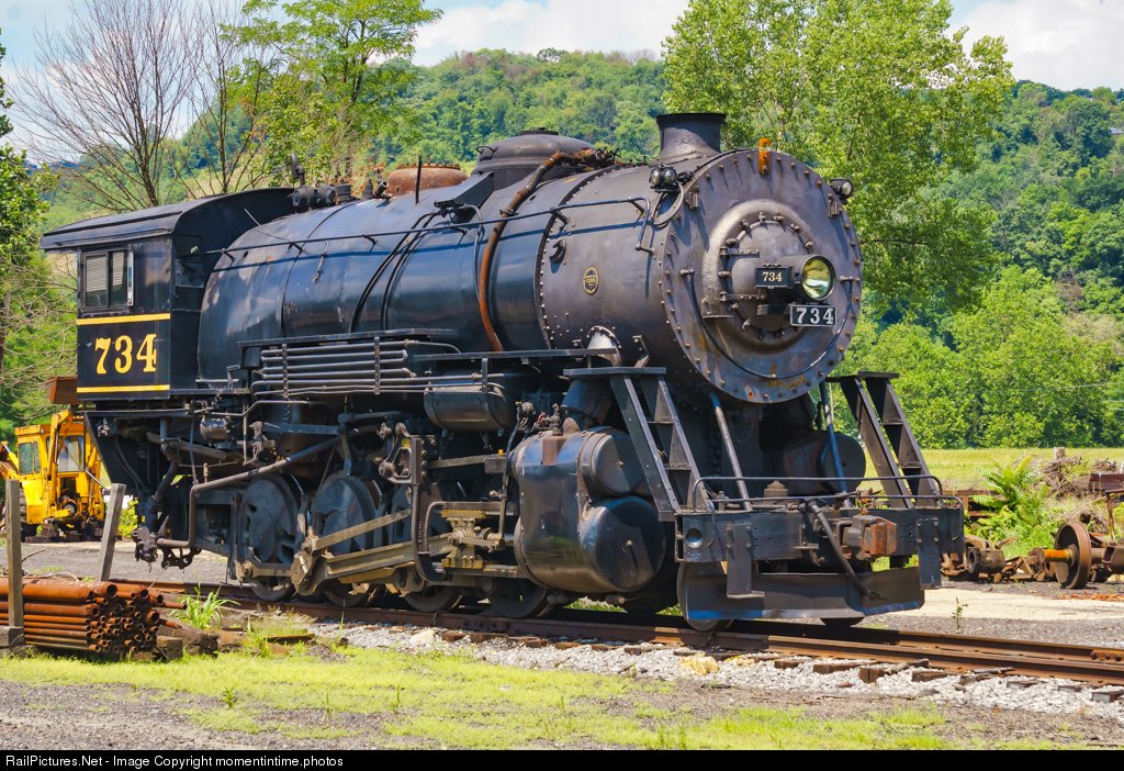 RailPictures.Net Photo: WMSR 734 Western Maryland Scenic Railroad Steam 2-8-0 at Ridgley, West Virginia by momentintime.photos