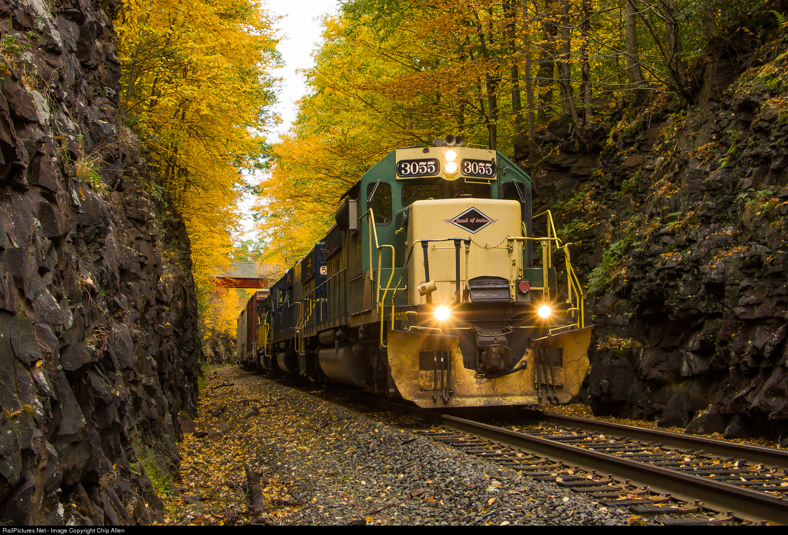 | With fall colors popping on the northern part of the system, the NRFF is seen grinding upgrade at Neely's Cut just north of White Haven. This cut where the LV crossed over top of the CNJ is the ruling northbound grade on the Lehigh Division main. |