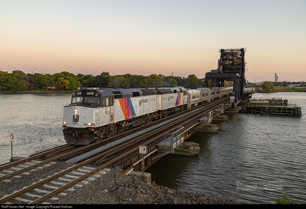 F40PH-2CATs 4119 and 4120 are back together to bring train 1171 across HX Drawbridge in Rutherford during sunset. The pair is being tested before making their official return to revenue service.