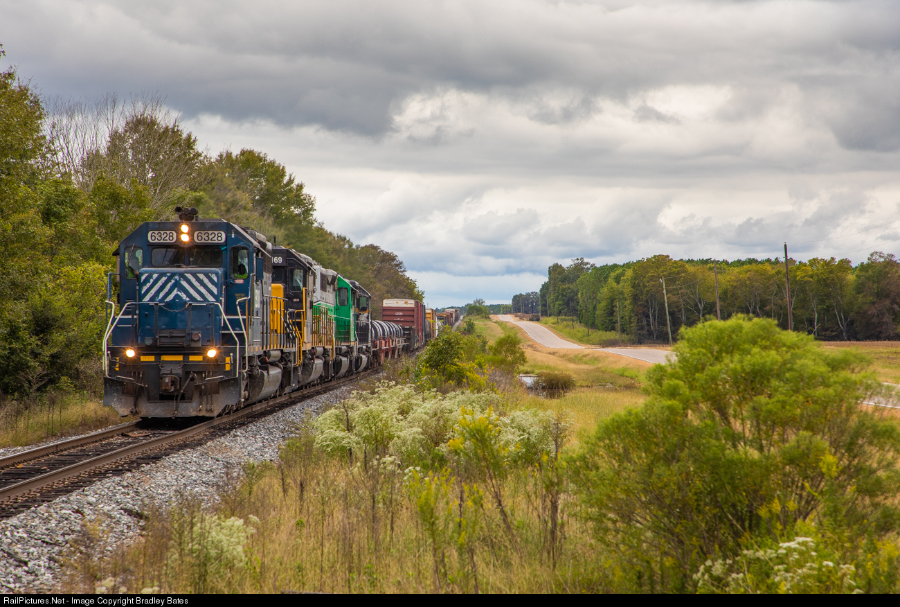 | Alabama Southern Train 112 heads back east to Reform, AL, as they depart Artesia, MS, with interchange from KCS. |