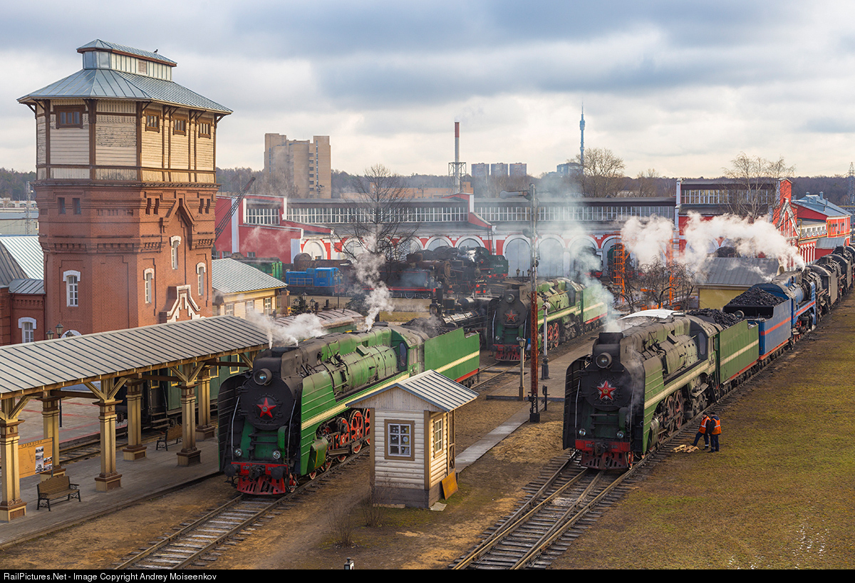 | One day Moscow, Russia. This depot still use steam engines in regular work. On photo 5 hot engines - too much for 21 ceinture, happens about once a year. |