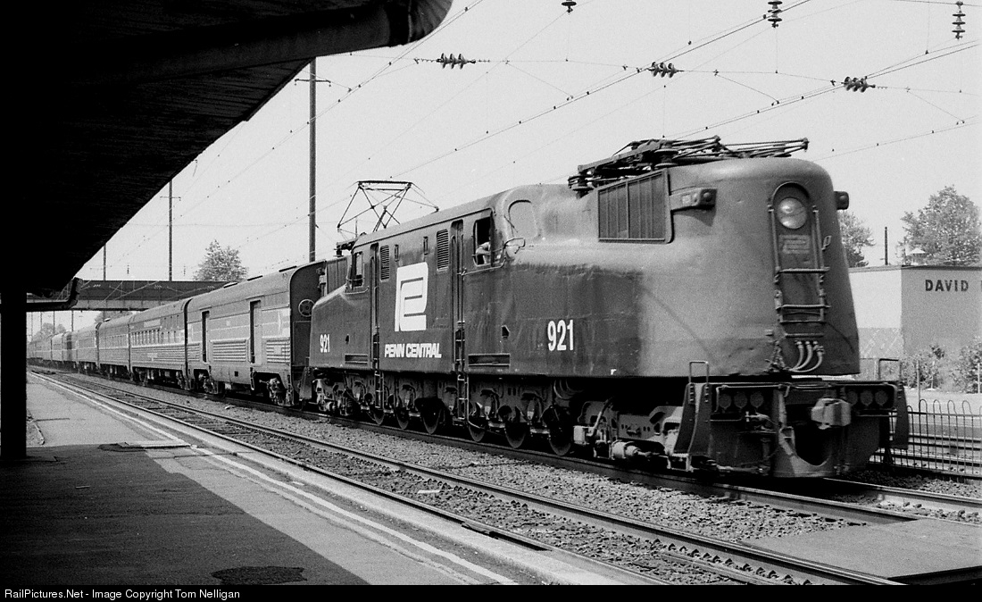 Nearing the end of its journey from Chicago, Amtrak's eastbound Broadway Limited sails through North Elizabeth, NJ. Note that GG1 921 bears its Amtrak number but still sports Penn Central worms on its flanks.