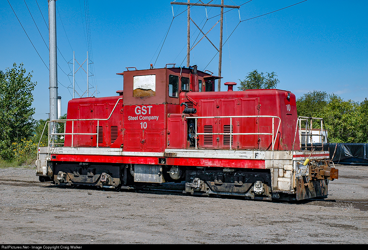 | GST Steel 10 is a GE 65-ton locomotive. It appears that its cab has either been repaired or modified (possibly making it taller). This locomotive was photographed at One Steel Grinding Systems LLC in Kansas City, Missouri, on September 17, 2010. Photographed on private property with permission and full PPE. |