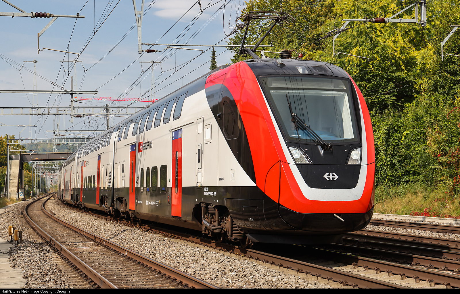 Bombardier Twindexx Swiss-Express or "FVD" of the SBB (doubledeck train for long distance services) RABe 502 # 219 (IR200 version), coupled with not visible RABDe 502 # 006 (IC200), is running 12 minutes late IC 713 of the line IC 1 from Geneva Airport to St.Gallen, between Winterthur and Winterthur Grüze. The train has 1288 seats in first and second class.