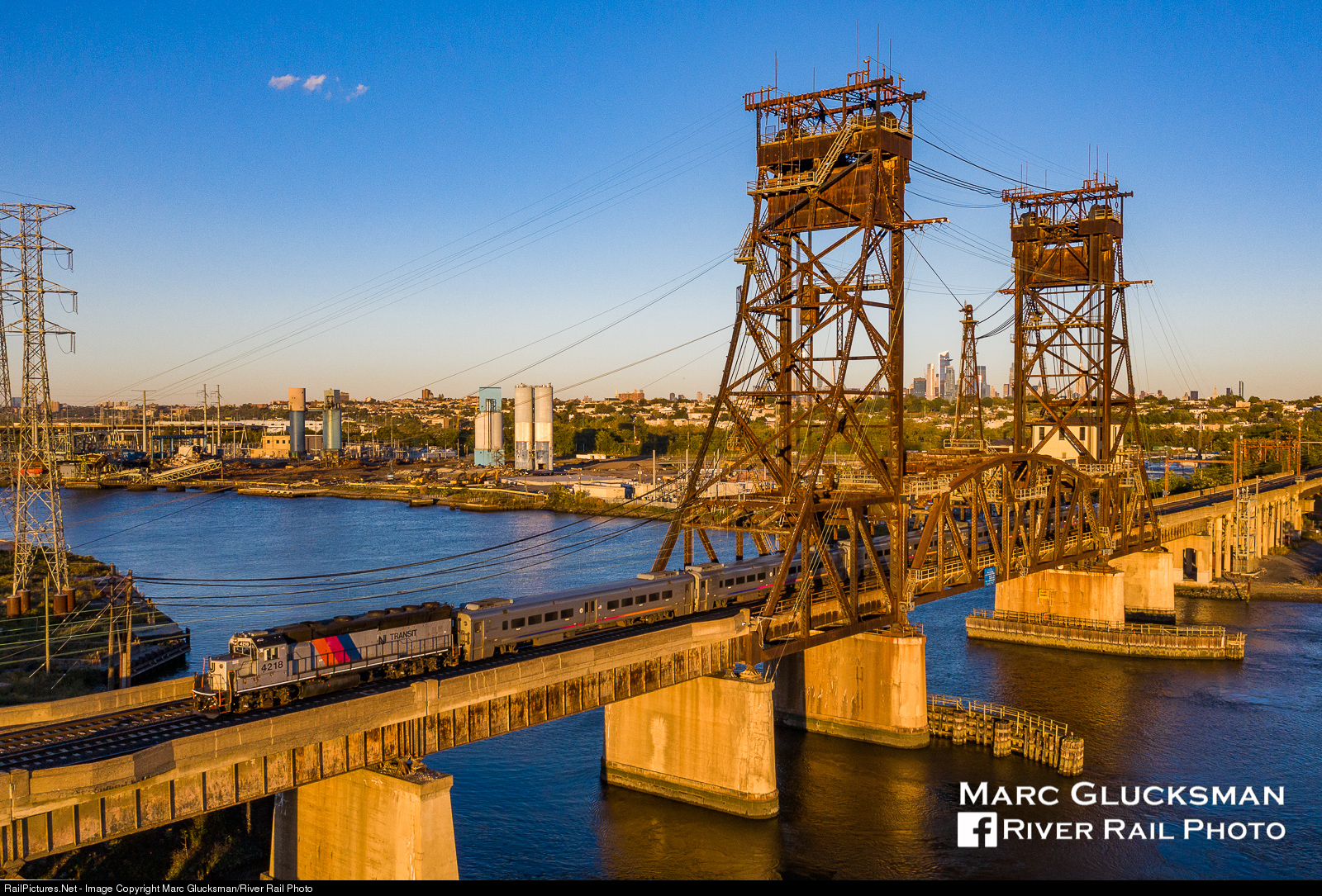 Never Say Never, Again. NJ Transit 4218 (GP40PH-2B, neƩ Penn Central 3199, GP40, 10/1968) has recently returned from the non-revenue and stored fleet back to active passenger service. On the evening of Thursday, October 8, 2020, it leads Train 1009 over Lower Hack Bridge near Jersey City, NJ while celebrating the month of its birth, 52 years later. Once thought to be headed off the property, the substantial fleet of "geeps" have been a major resource to NJT as it sorts out PTC and mechanical issues with its more modern engines.