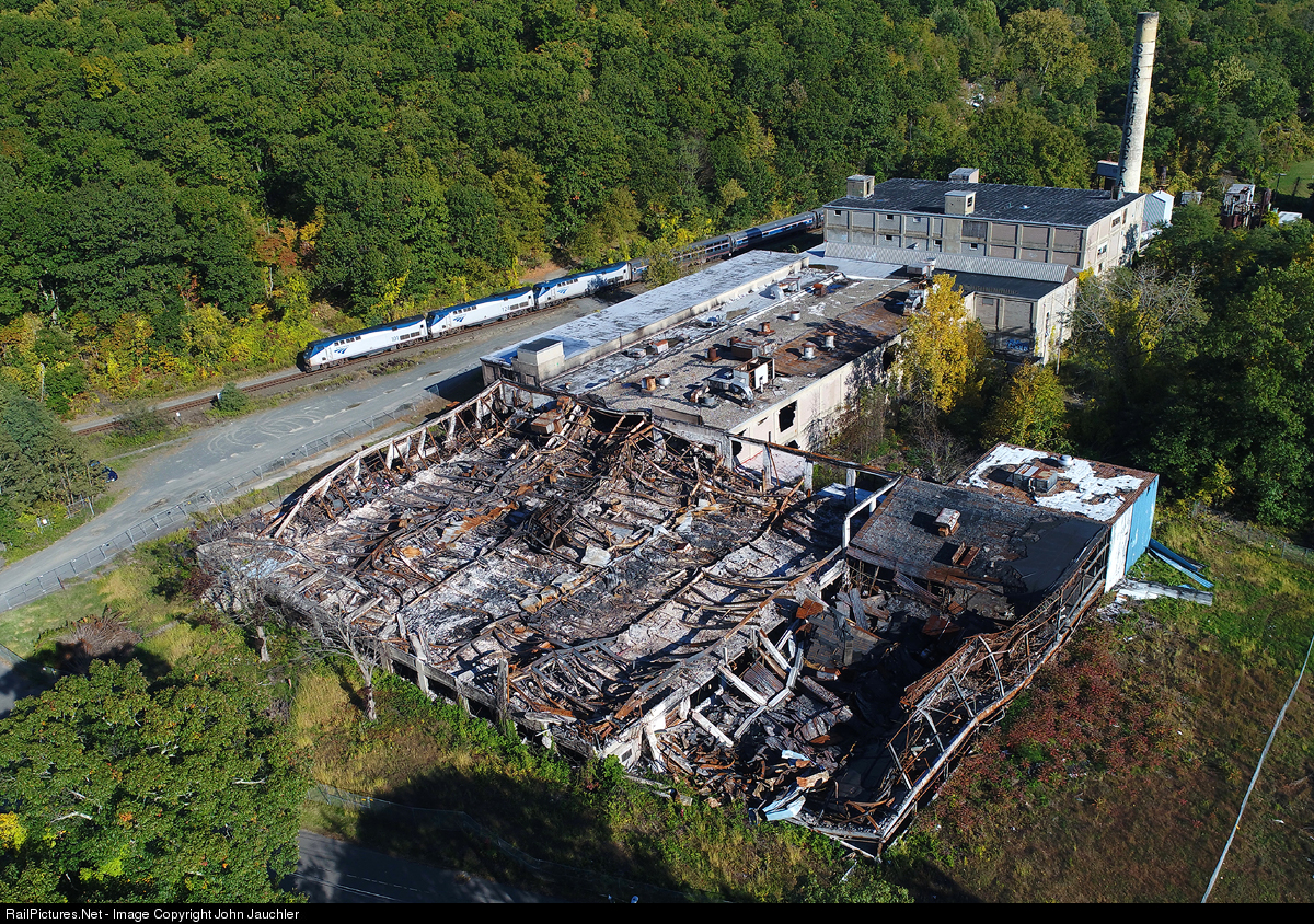 When most people think of New England, quaint villages and fall colors are the first things that spring to mind. Go back 100 years and more, however, and you'd find a region filled with factories and mills, churning out the goods the country needed to get through several world wars. Much of that began to move out starting in the 1950s, leaving a trail of derelict factories. Strathmore Paper Mill #2 here in the Woronoco section of Russell, MA held on longer than many, finally closing in 1999. As is fairly common with abandoned buildings, this one burned rather spectacularly on the evening of June 19, 2020 under suspicious circumstances. Amtrak's "Lake Shore Limited" passes the burned-out hulk nearly four months after the fire.