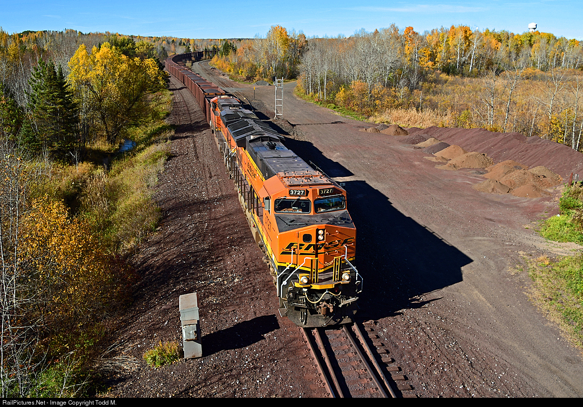 RailPictures.Net Photo: BNS 3727 Burlington Northern Santa Fe GE ET44C4 at Mountain Iron, Minnesota by Todd M.
