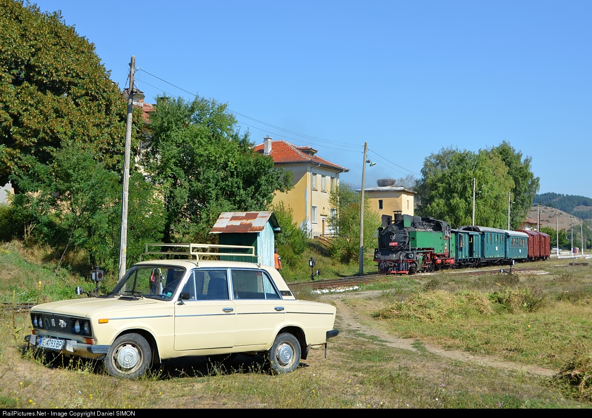 A mixed train hauled by the impressive 2-10-2T narrow gauge steamer is leaving the Belica station en route to Bansko. Does anybody know the brand and the model of the car? It looks like a Fiat to me.