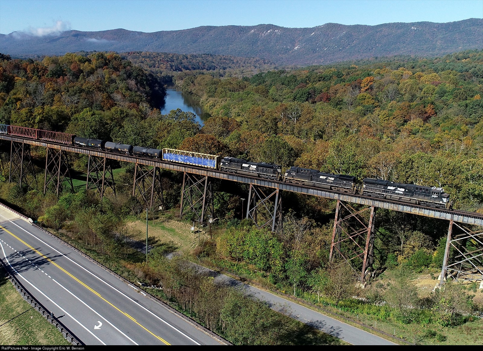 Fall is coming to the Shenandoah Valley, as NS 8007 leads train 12Z over the high trestle at Compton. #716