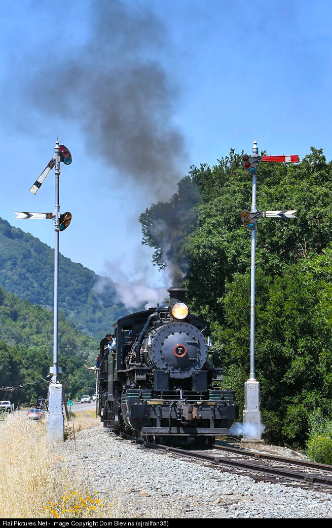 Columbia River Belt Line #7 "Skookum" Leads its Train Past the Sempahore Signals as it makes its way into Sunol Depot During the Golden Spike 150th Anniversary Excursions.