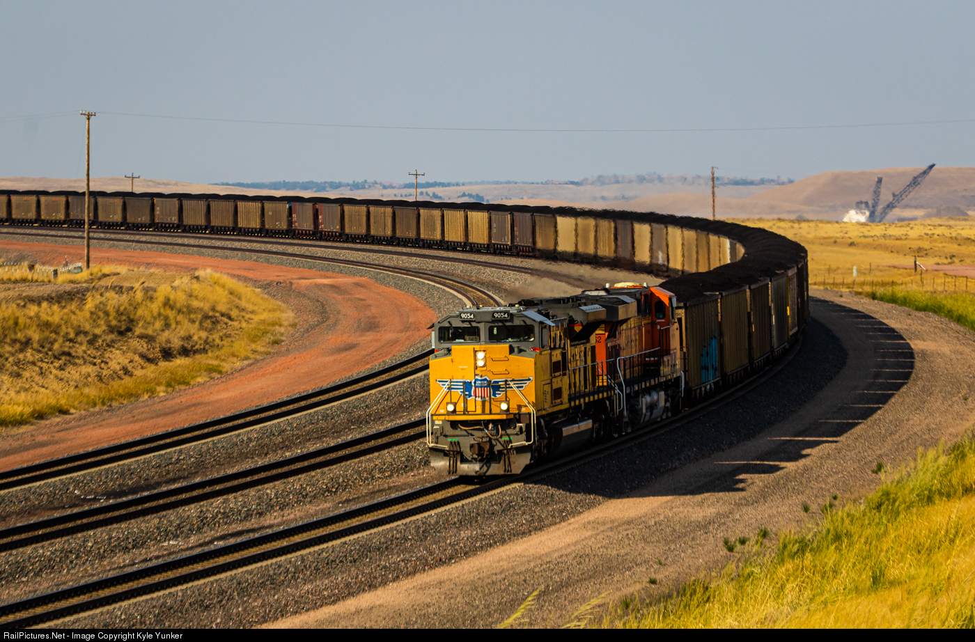 | UP SD70AH #9054 leads a BNSF coal train south at Lawyer Road with a fresh load of PRB coal. A month prior to this I caught this same UP/BNSF pair on a empty coal train ~1700 miles away in Atlanta,GA. |