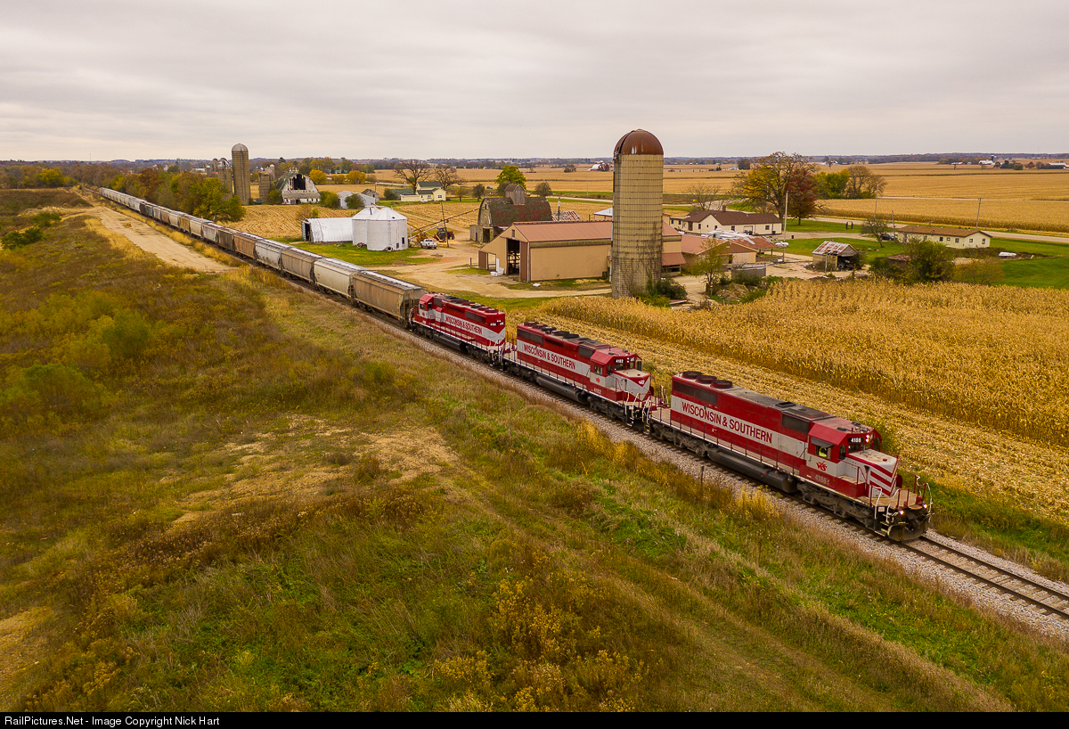 A trio of Wisconsin & Southern's finest lead T4 through Milton, WI on a cold and cloudy fall afternoon. T4 runs from Horicon to Janesville.