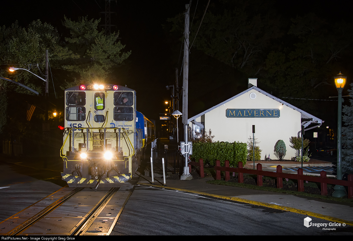 Long Island Rail Road's "LaserTrain" heads west past Malverne Station towards Valley Stream on the West Hempstead Branch. Opened in the early 1900s as "Norwood", Malverne is the old surviving station along the West Hempstead Branch.