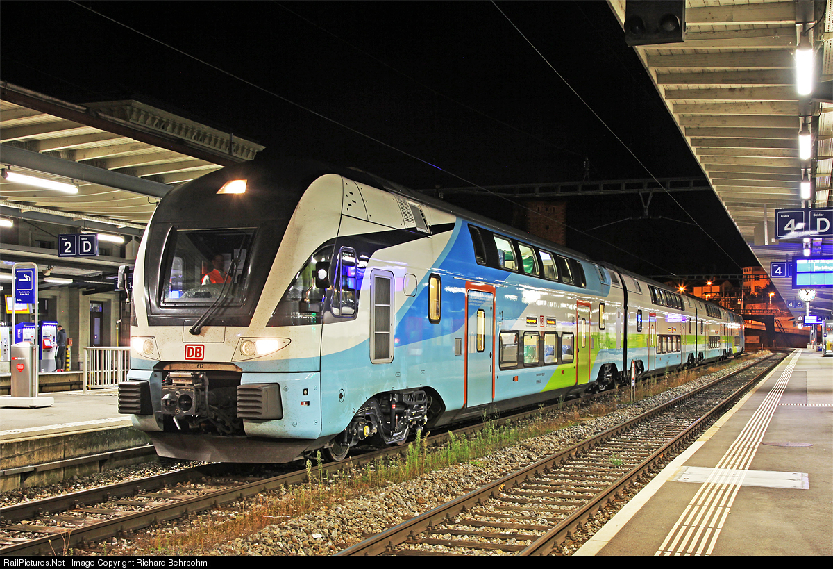 | Deutsche Bahn doubledeck intercity 4110 012, a former train of austrian "Westbahn", is ready to leave Schaffhausen for a testrun to Singen (Hohentwiel). |