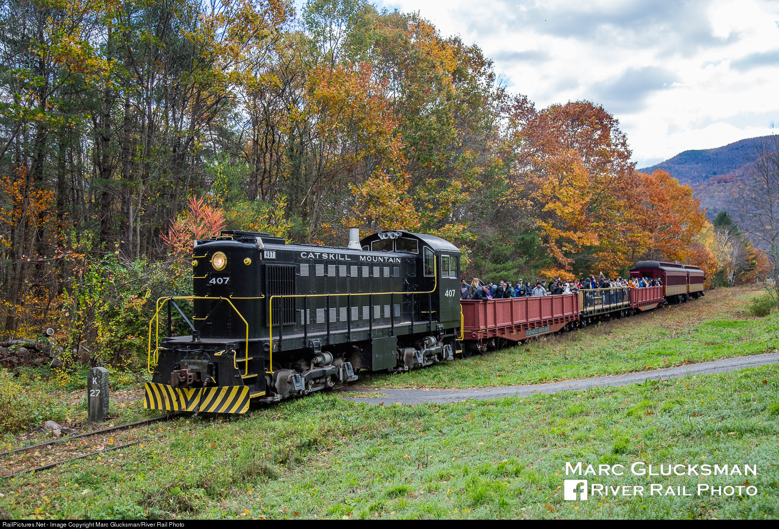 Four years ago, it was a different place. Catskill Mountain Railroad Co. Alco S1 (ex-Staten Island Railway 407, née-Long Island Rail Road 407, 6.1946) passes the K27 (Kingston) milepost in Phoenicia, New York on Sunday October 23, 2016 on what turned out to be one of the final trips on the line. Service had been planned for the following weekend, but a derailment caused an early termination. The history of the Ulster and Delaware Railroad/New York Central Mountain Branch began with the chartering of the Rondout & Oswego Railroad in 1866. Passenger service ended in 1954, and freight service west of Kingston ended in 1976 with a small section east of Kingston remaining until 1979 in the Conrail era. The Catskill Mountain Railroad was formed in 1983 to operate the 38.6 miles of the line purchased by Ulster County. Since late 2016, the CMRR has continued to operate on a segment around the City of Kingston, while significant portions of trackage further west have been removed. The Delaware & Ulster Railroad and Trolley Museum of New York operate other sections, while the Ashokan Rail Trail now occupies the middle.