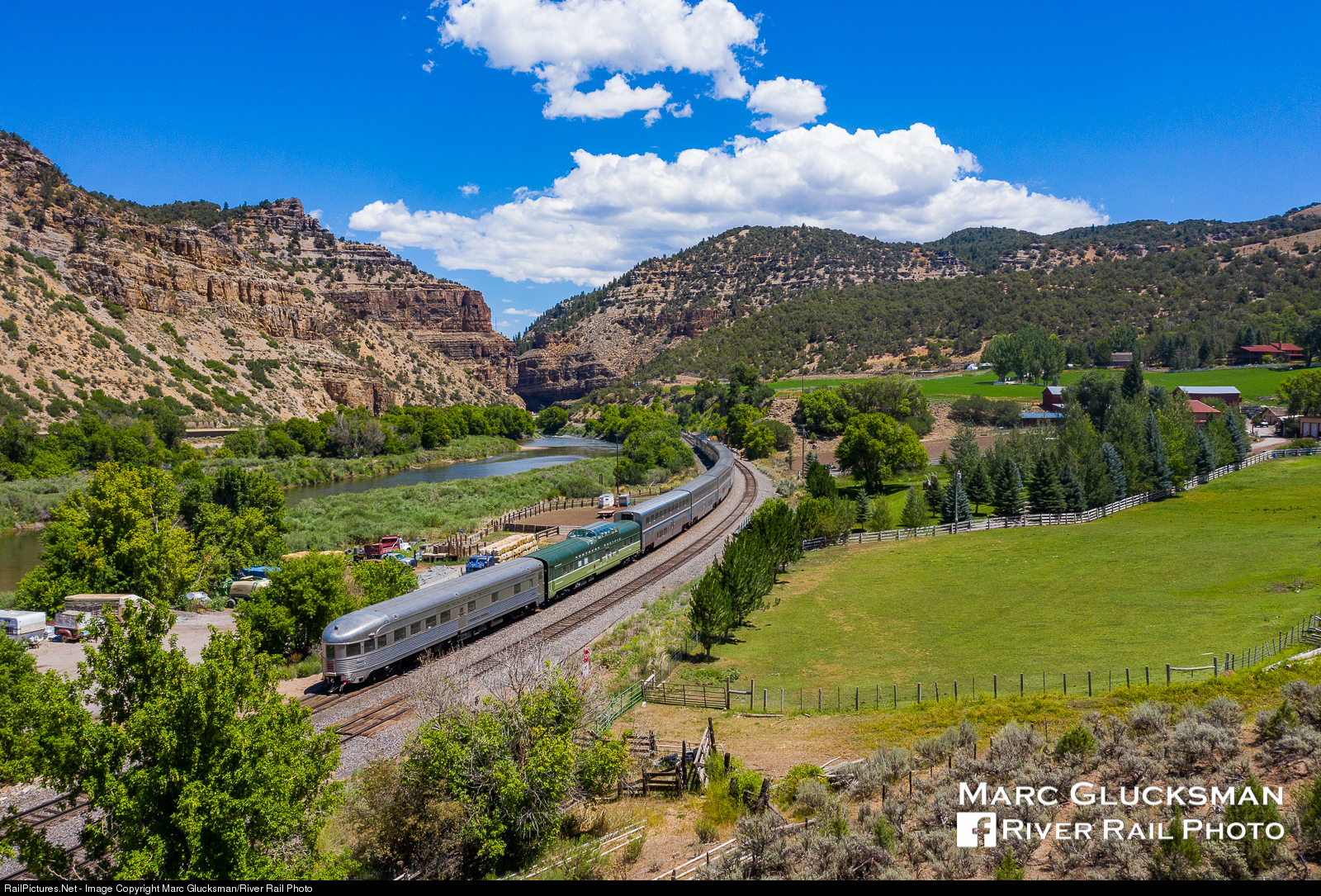 On another Water Level Route. On the afternoon of Monday, July 27, 2020, Webb Rail LLC - WEBX's former Northern Pacific Railway Budd built Pullman dome/sleeper 313 (WEBX 801044) and former New York Central Railroad Budd built Pullman obs/diner/sleeper "Babbling Brook" (WEBX 800007) hold the markers of the Amtrak California Zephyr (Train 6) as it passes through Gypsum, Colorado and the Blair Ranch. A portion of the Zephyr's route between Glenwood Springs and Granby will parallel the Colorado River and the former NYC "Brook" will feel right at home being level with the water.