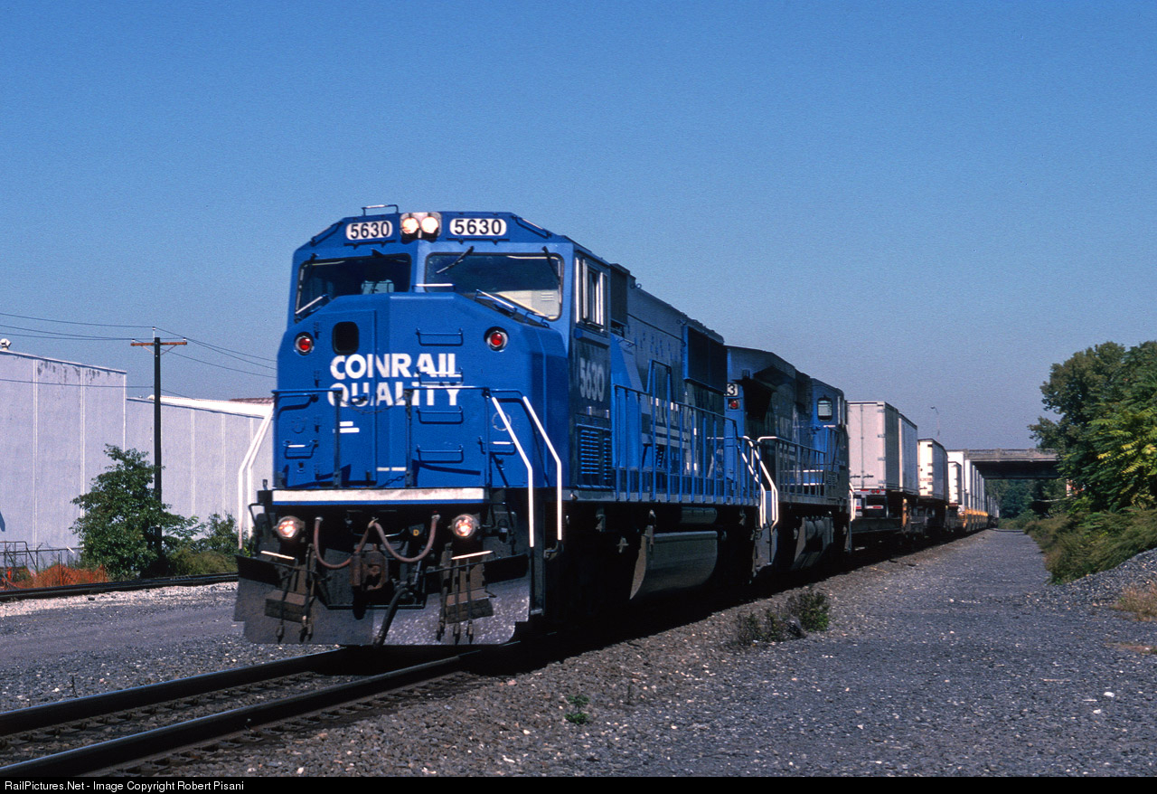 A random unlabeled slide of a Conrail train from my collection (I usually kept good notes at the time, too). Could be TV-10 or maybe even TV-80 based on the lighting/time of day. Looks like there may be a block of double stacked UPS containers in the consist. Regardless, that's definitely CP5 in Ridgefield Park, NJ on the River Line.