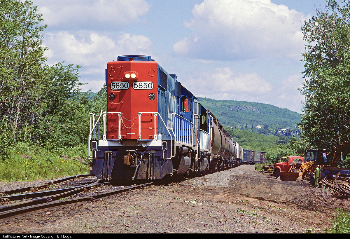 DWP 5850 and mate handle heavy switching at DWP's West Duluth yard on the hillside above Lake Superior. The former GTW Geeps are now lettered in DWP and in an era of rapid change, the whole operation will leave Minnesota and move into a new yard at Pokegama, WI, south of Superior. The new yard is adjacent to DMIR's Interstate Branch and will eventually become an integral part of CN's mainline from western Canada to Chicago.