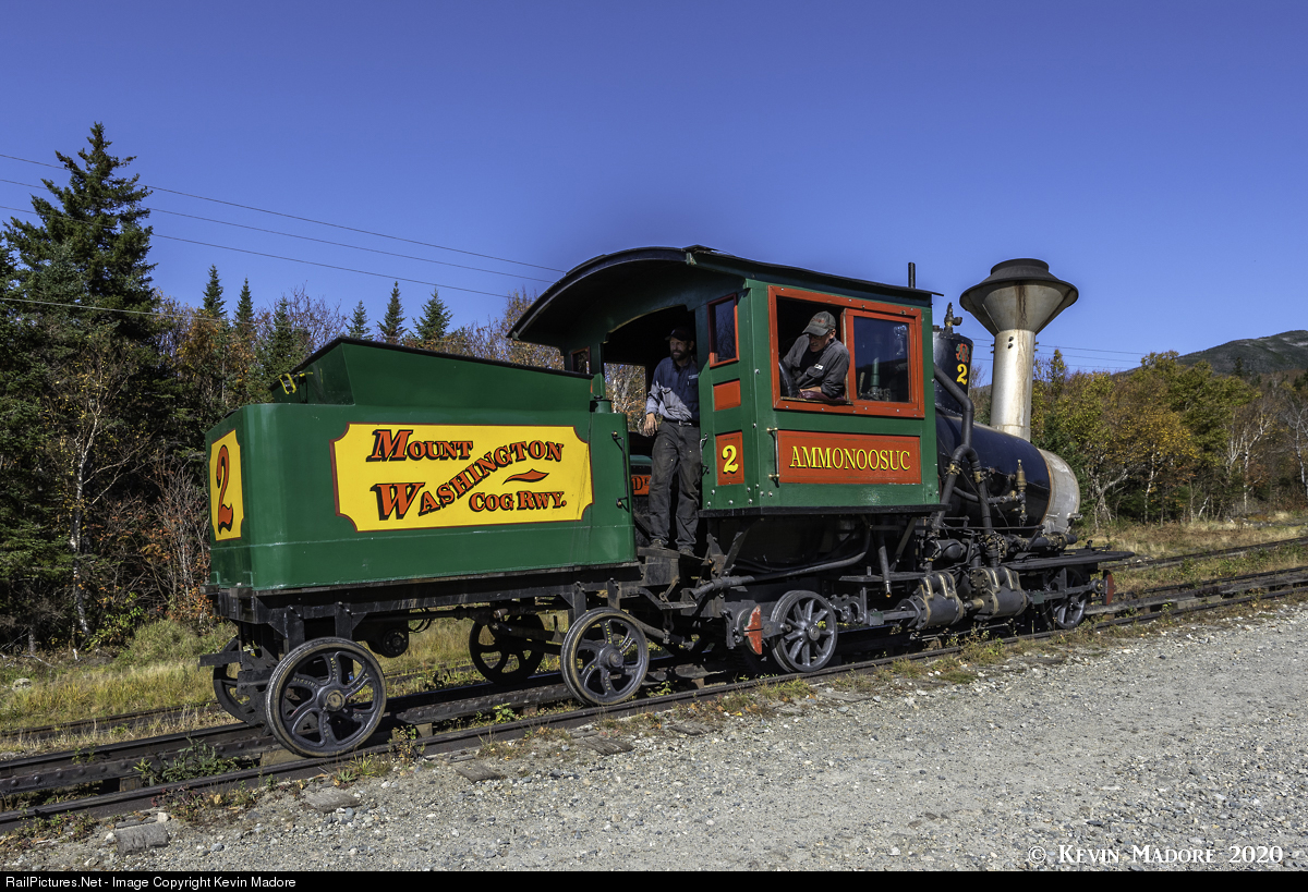 Stuff happens. What was to be the last day of steam operations on the Mt. Washington Cog Railway ended early for Engineer Joe and Fireman "Cookie." They had two runs scheduled this day and things were going just swimmingly....until they were descending through Skyline after the morning run to the summit. Then suddenly, their locomotive lurched and began descending faster than normal....fast enough to take separation from their coach, and fast enough to really get their attention. Fortunately, both of these fellows are lifelong coggers and they reacted instantly, applying hand brakes to slow their engine. Meanwhile, the young Brakeman on the coach also reacted, winding up his brakes so he would not collide with the locomotive, which he knew would be taking action to stop. Thanks to the training and experience of these folks, both entities came to a safe stop. But now, the engine crew had a problem to resolve and they had to fix things, while perched on a trestle and on one of the steeper sections of track. Our intrepid Fireman literally crawled out on the trestle, only to discover that his locomotive had bent its right rear connecting rod. The only way to resolve the problem would be to physically remove that rod.....right there on the trestle, with tools he had available in the cab. And this he did. After about 30 minutes, the train resumed its descent, with the locomotive braking only on 3 cylinders, and the Brakeman keeping the coach completely off the locomotive. They did a masterful job. When they arrived at the station, there was pretty large group of fellow coggers waiting to welcome them, including the gentleman who owns the railway. But unfortunately, they were done.....for the day and for the season. They had one run left to go and little #2 would not make the call. She was just one run away from a completely trouble-free season.
