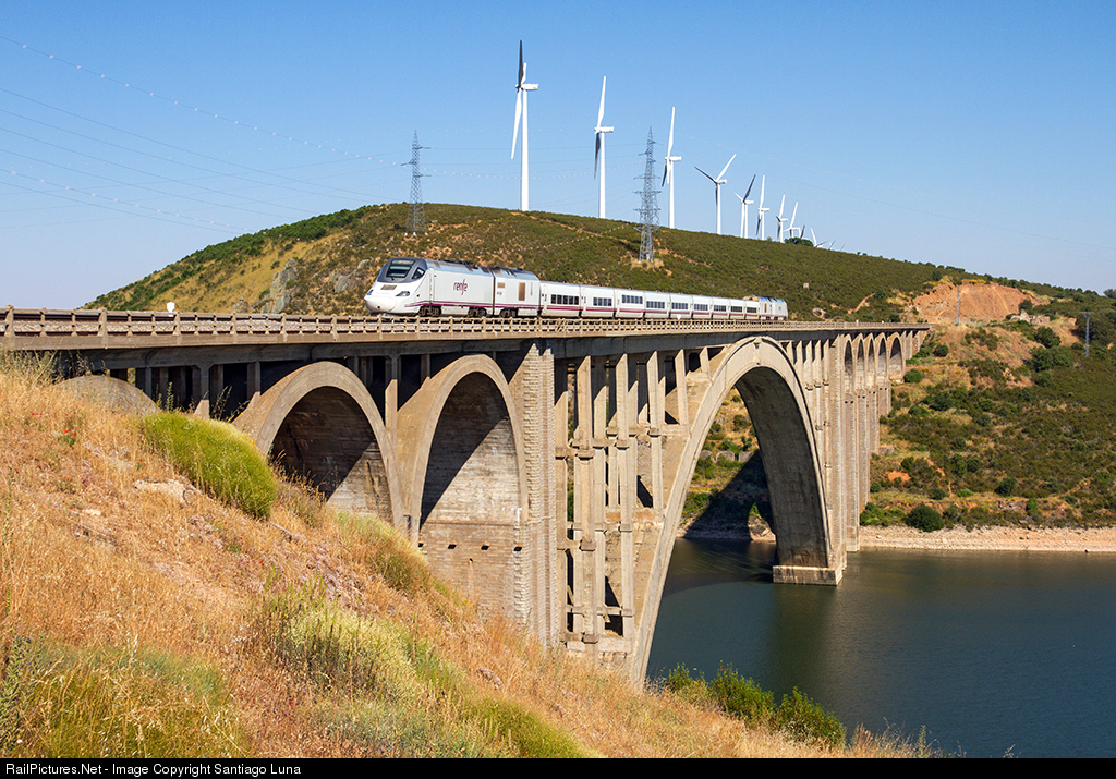On October 26, the Zamora-Pedralba High Speed section was inaugurated. This newly released infrastructure saves 50 minutes on the journey between Madrid and Galicia, but with it, the vast majority of the rail traffic that circulated through Martín Gil Viaduct disappears. Currently this section is only used by a tiny Medium Distance train and a freight that only makes an appearance once a week. The transfers of material between Madrid and Galicia will continue to be carried out also by this imposing viaduct, but such a low number of circulations will hardly justify that we fans approach this magnificent railway pilgrimage point. I'm going to miss it a lot because, although I have visited it many times, it still impressed me every time I saw it. Without a doubt, I will continue to take photos around the province of Zamora since there are still interesting sections of the conventional line that are still operating from Pedralba. Who knows if in one of those visits it coincides that the elusive freight circulates through Martín Gil by day and with a favorable light ... In that case, do not doubt that I would completely change my plans and would be delighted to meet again with this spectacular and magical viaduct. Alvia train Madrid-Galicia.