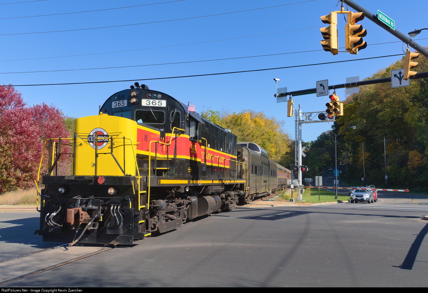 Take a busy 4 way intersection and put a railroad right through the middle of it, and you end up with the confusion that is the intersection between Merriman Road and N Portage Path. While it was interesting and chaotic just watching the traffic on this busy Saturday in the Valley, that's not why I was here. Interestingly, when the Cuyahoga Valley Scenic Railroad's Fall Flyer put a pause to the traffic, I found I wasn't the only one with a camera. There were countless phones held out of open windows filming the train, and I was surprised to see that still so many people would even be interested in its passing.
