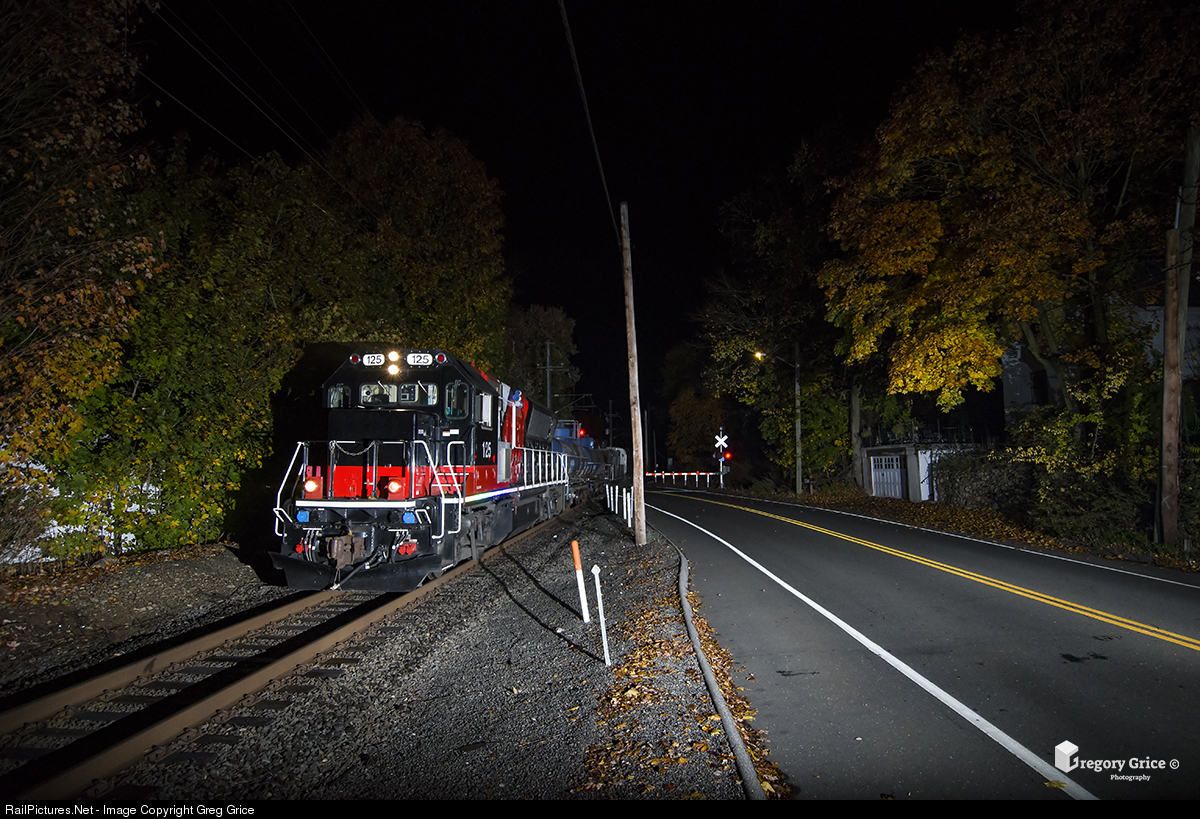 "Water World at Hoyt" Metro North's "Water World" crosses Hoyt Street in Darien, CT on the New Canaan Branch. "Water World" is Metro North's rail washer tasked with spraying leaf residue off the rails throughout the electrified territory, mainly the Harlem & New Haven Lines. This Water World set consists of a Cab Car, Sprayer Car (flatcar), 2 water tanks and a BL20GHM for power. The leader, CDOT BL20GHM 125, was a BL20GH, originally built by Brookville Equipment Corporation in 2008. After years of service, Metro North & CDOT contracted Motive Power Industries (MPI) to rebuild the BL20GHs starting with the 125. This rebuild included the swapping out MTU-Detroit Diesel 12V4000 for a more reliable Cummins prime mover and upgrading several other components on the engine. For the CDOT owned engines the rebuild also called for repainting the locomotives in CDOT's new "CTrail" scheme.