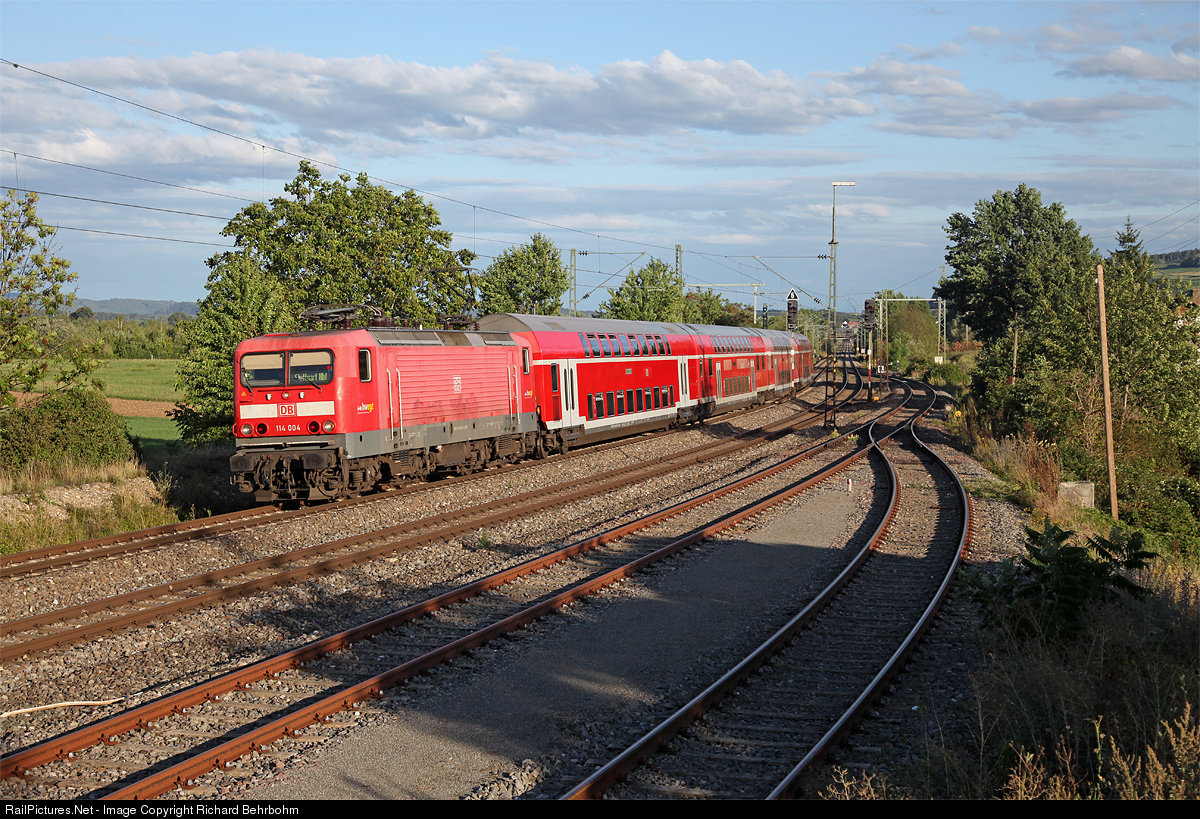 | Special train for passengers with bikes from Radolfzell near the Lake Constance back in the evening to Stuttgart. The locomotive was built in 1990 by LEW Hennigsdorf. |