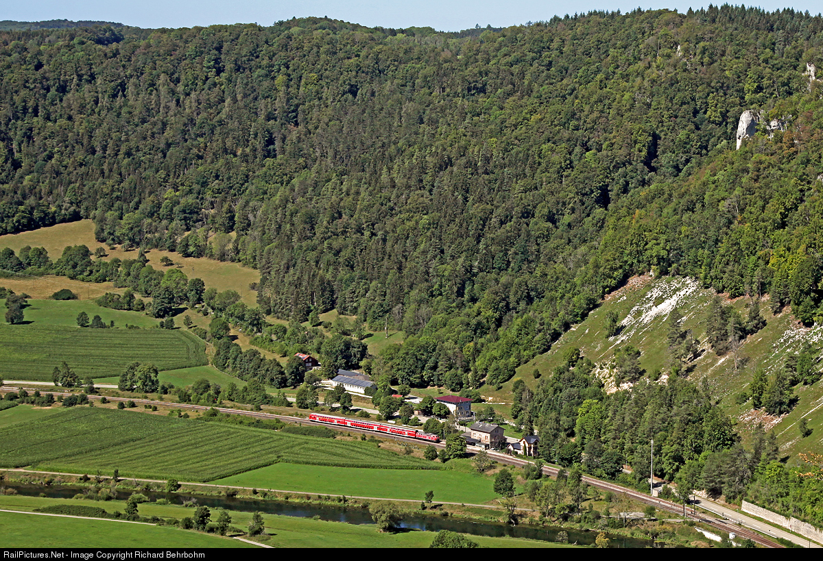 | Regional Express Ulm - Donaueschingen makes a stop at the small station Hausen im Tal. |
