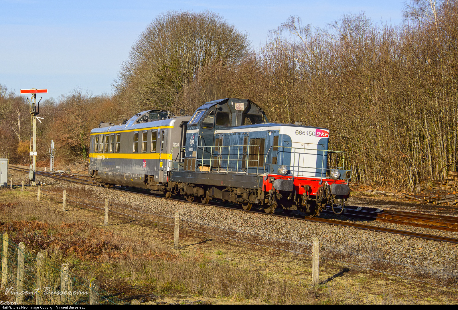 | Transport of an IES car measuring the rails from Périgueux to Villeneuve St Georges passing one of the mechanical signals of bussière station |