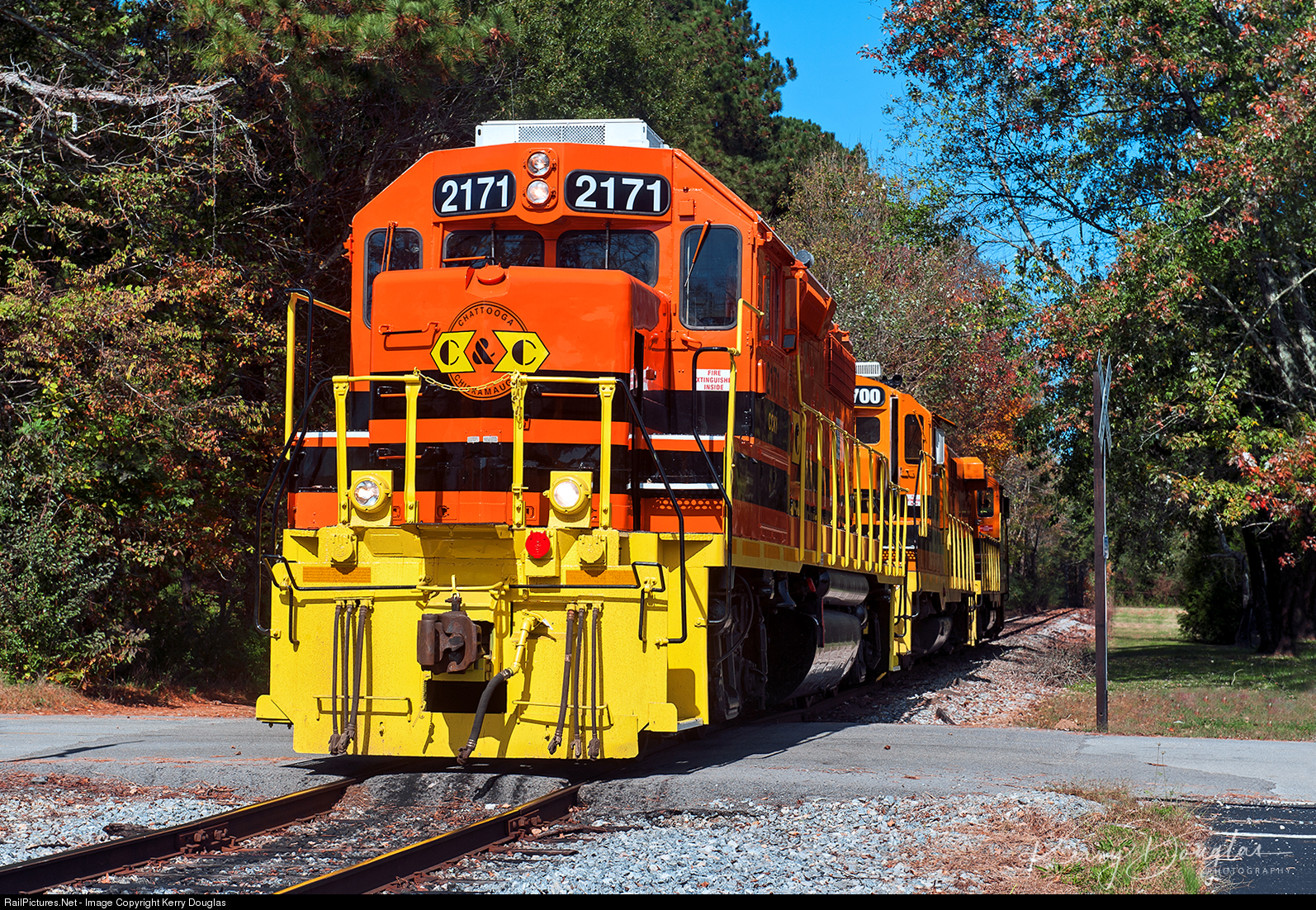 After cutting from it's train at Nobles, the trio of orange, and black EMD's run north up the former Central Of Georgia CR&S toward Rock Spring to pick up a cut of hoppers to bring back to Audia Plastic. CCKY NÂș 2171 a former Southern Rwy GP38-2 had recently been delivered to the Chattanooga & Chickamauga Rwy has the much needed third locomotive and, is being put to use in revenue service. The Genesee & Wyoming Corporate look is completed, with the third locomotive as the railroad requested we have a prefect visual of the G&W full grip on this northwest Georgia Short-line. The era of the Classic Chattanooga & Chickamauga Blue and, Gray is has since pass.