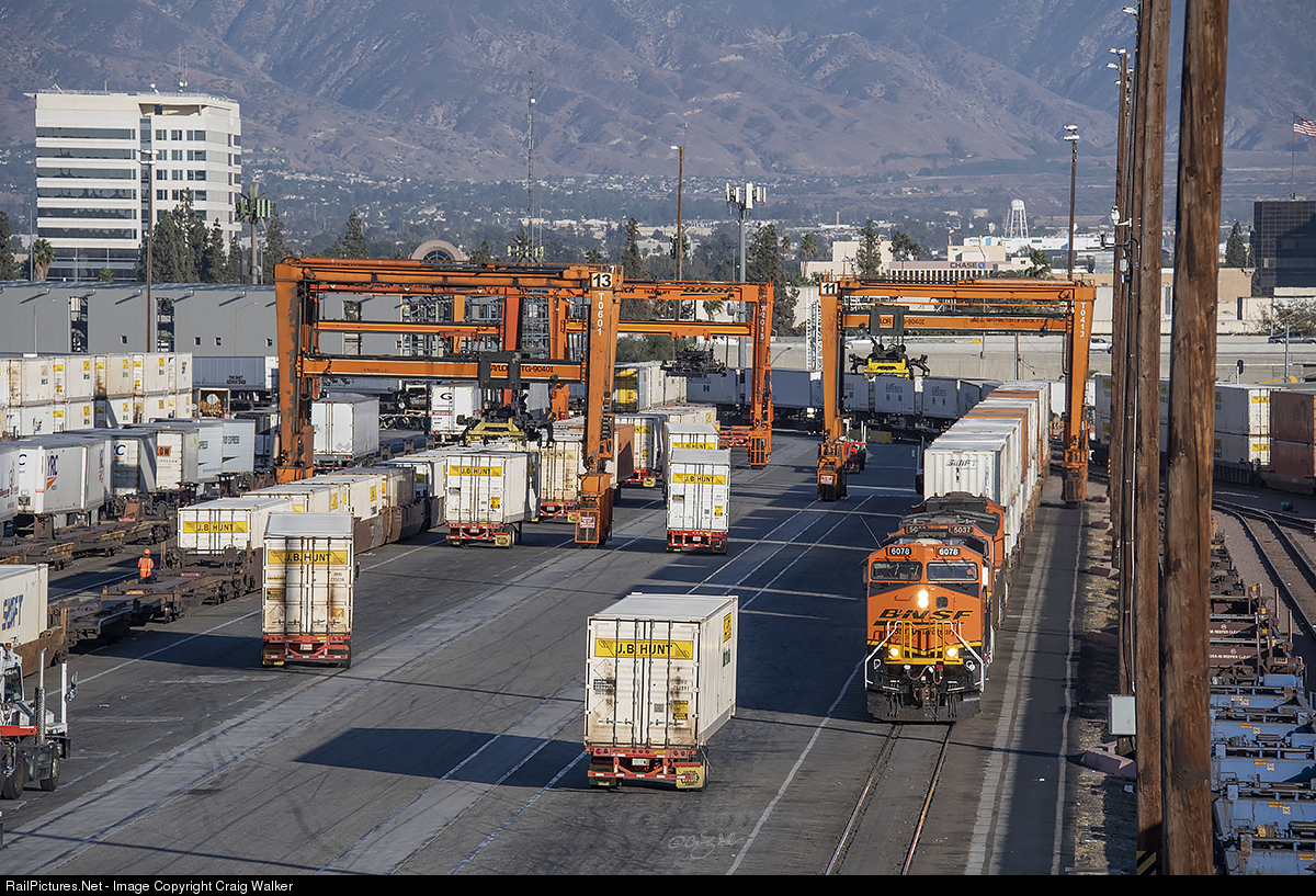 BNSF Railway Guaranteed Service Intermodal train Q-ALTSBD6-02 originated in Alliance, Texas, and has just arrived at its destination – San Bernardino’s A Yard. The train is just entering the yard, and once the entire train is off the mainline, the power will be cut off and serviced. BNSF 25th Anniversary ES44AC 6078 is leading a grain train out of Verdemont on November 5. (San Bernardino, California – November 4, 2020)