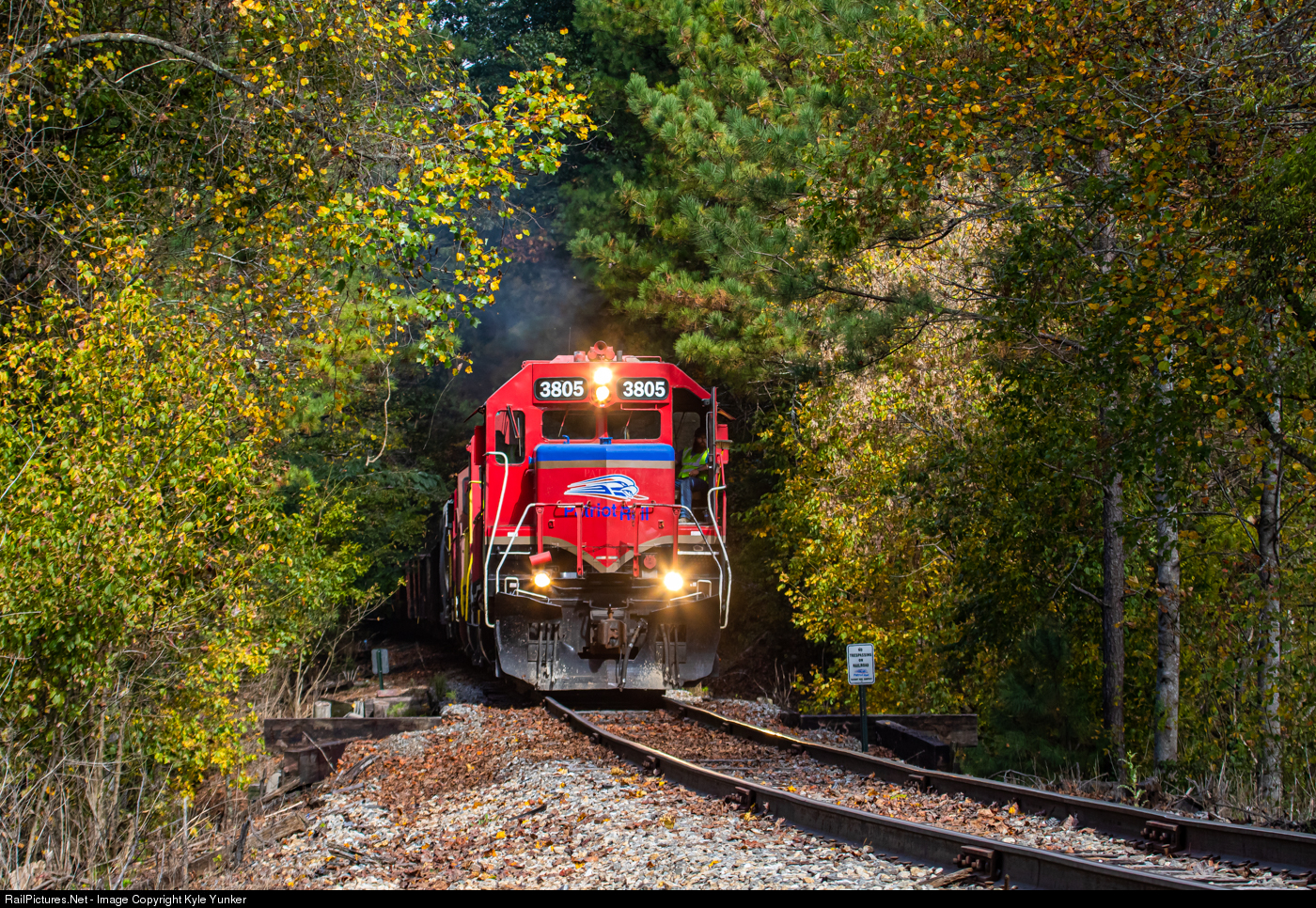 The Tate - Marietta road train passes by some fall colors north of the Toonigh siding