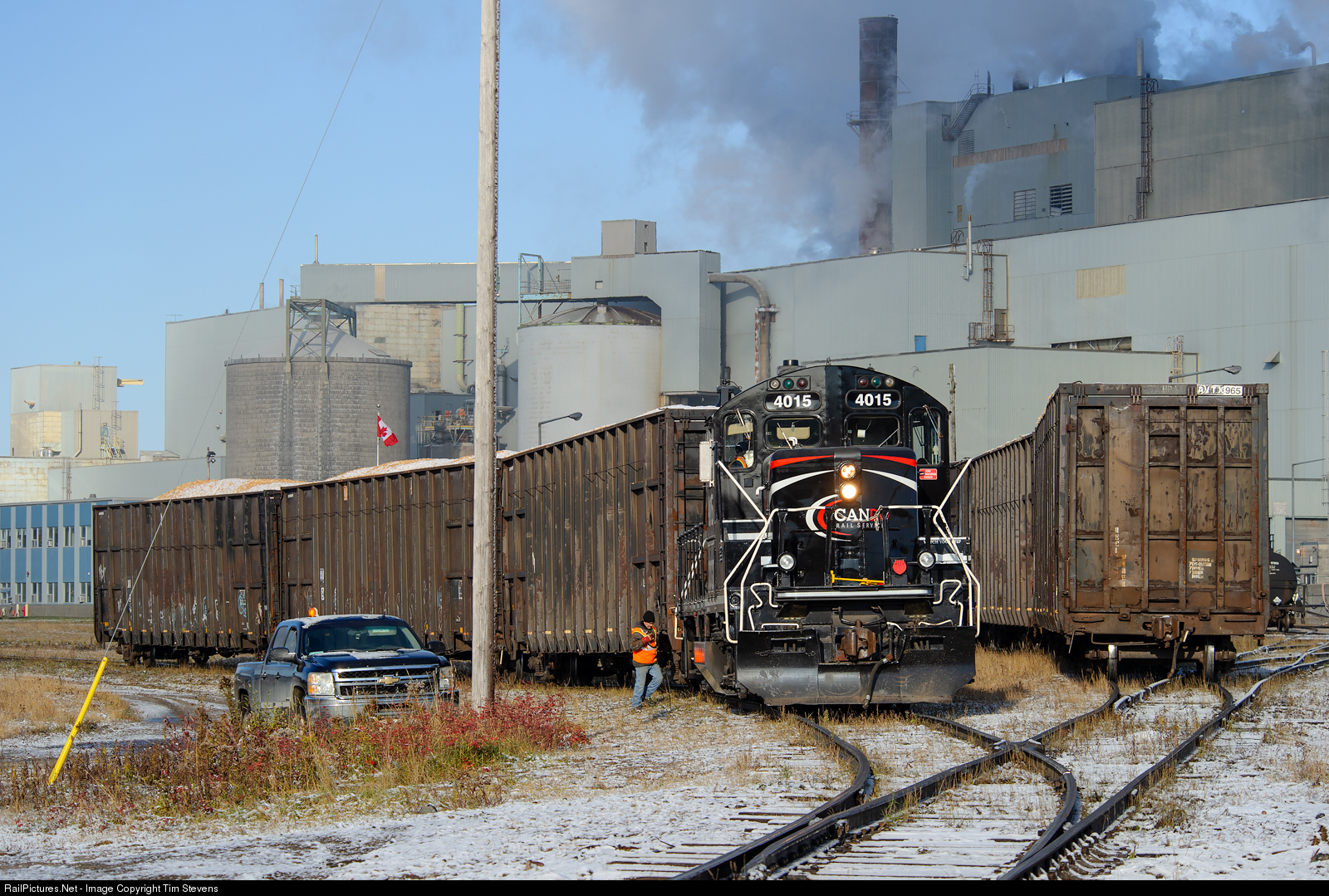 CCGX GP9RM 4015 switches out the large AV Terrace Bay Pulp Mill.