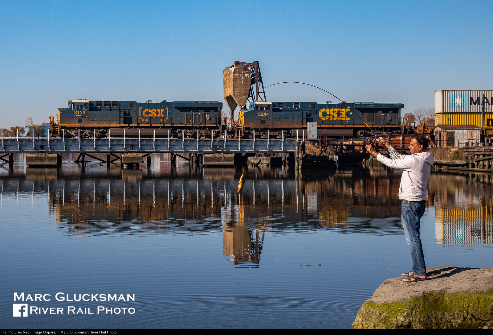 Teach me to fish, I will eat for a lifetime. The camera was trained on CSX Q010-07 with ES44AC-H 3139 leading, but apparently others were focused on their own activities. A chance meeting with a lucky fisherman on Sunday, November 8, 2020 at Overpeck Creek in Ridgefield Park, New Jersey yielded a nice reflection shot and an offer of a catfish, recently retrieved from the wet....not a bad way to spend a Sunday morning.