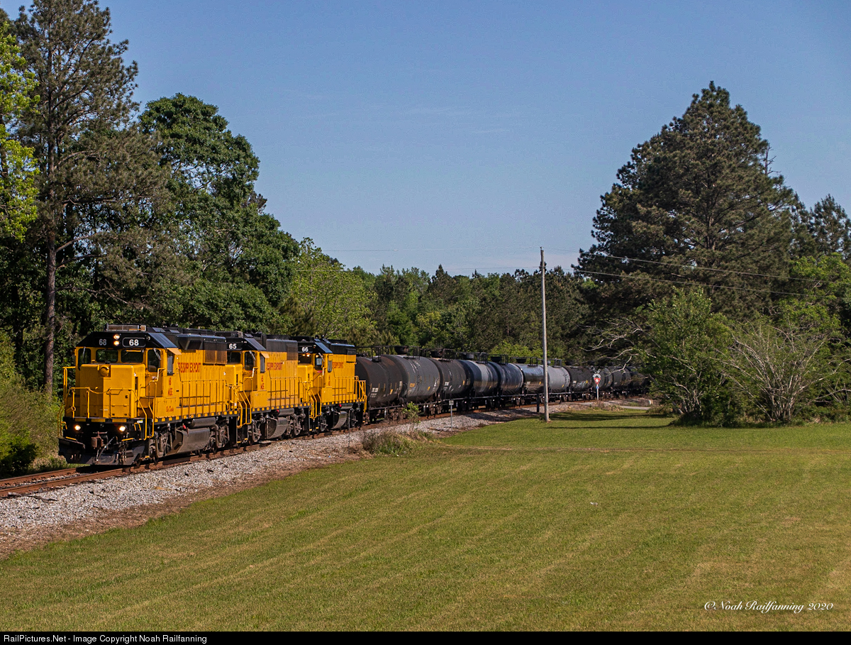 As the morning sun continues its ascent in the morning sky, MSE Train 51 is seen passing through Harleston, MS with ex-CNW unit MSE 68 “Big Daddy” as they continue southbound toward Helena, MS. MSE 68 was titled “Big Daddy” in honor of the former President of MSE, Mr. Luce. MSE 65 is trailing second and MSE 66 third. This was also MSE 66’s first run on MSE property since July of 2019, it was in Knoxville, TN at the Knoxville Locomotive Works, INC being Rebuilt and upgraded from a GP38-2 to a GP38-3.